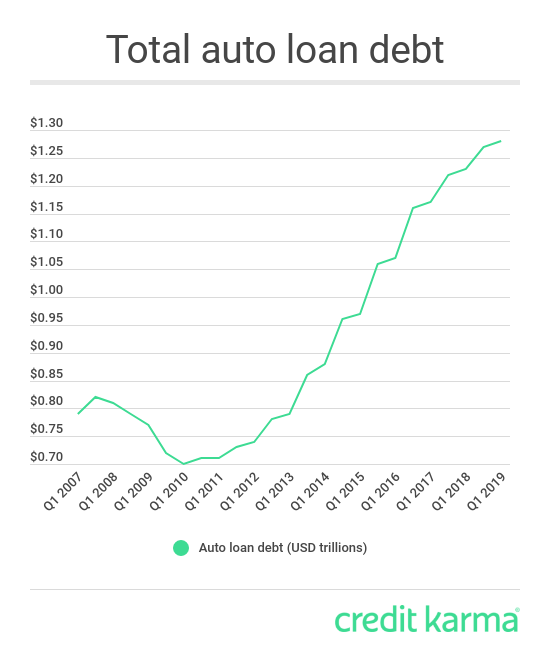 Un número cada vez mayor de estadounidenses solicita préstamos para comprar automóviles. En el primer trimestre de 2019, el Banco de la Reserva Federal de Nueva York descubrió que más de un tercio de las personas en los EE. UU. Tienen préstamos para automóviles, frente al 20% en 1999.