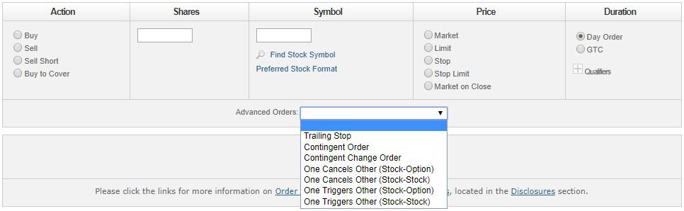 Aquí hay una captura de pantalla de los diferentes tipos de órdenes que puede realizar en Ally Invest , el corredor que utilizo.