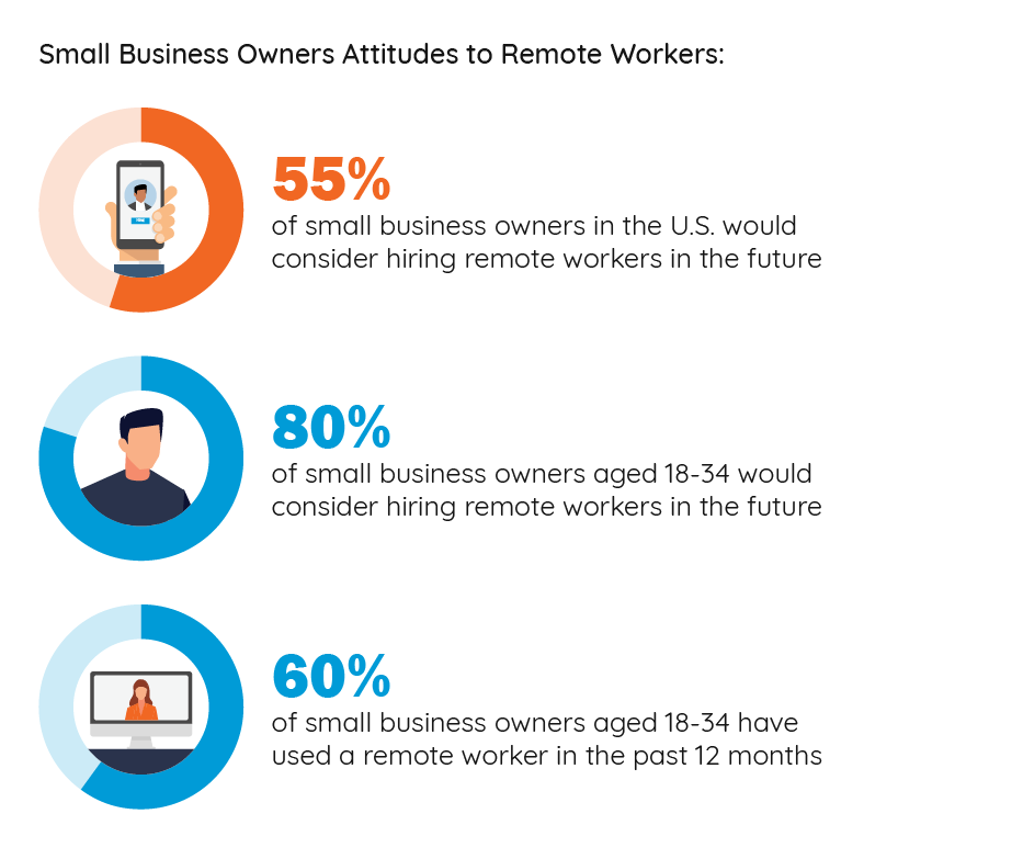 - El 60% de los propietarios de pequeñas empresas de entre 18 y 34 años ha utilizado un trabajador remoto en los últimos 12 meses.