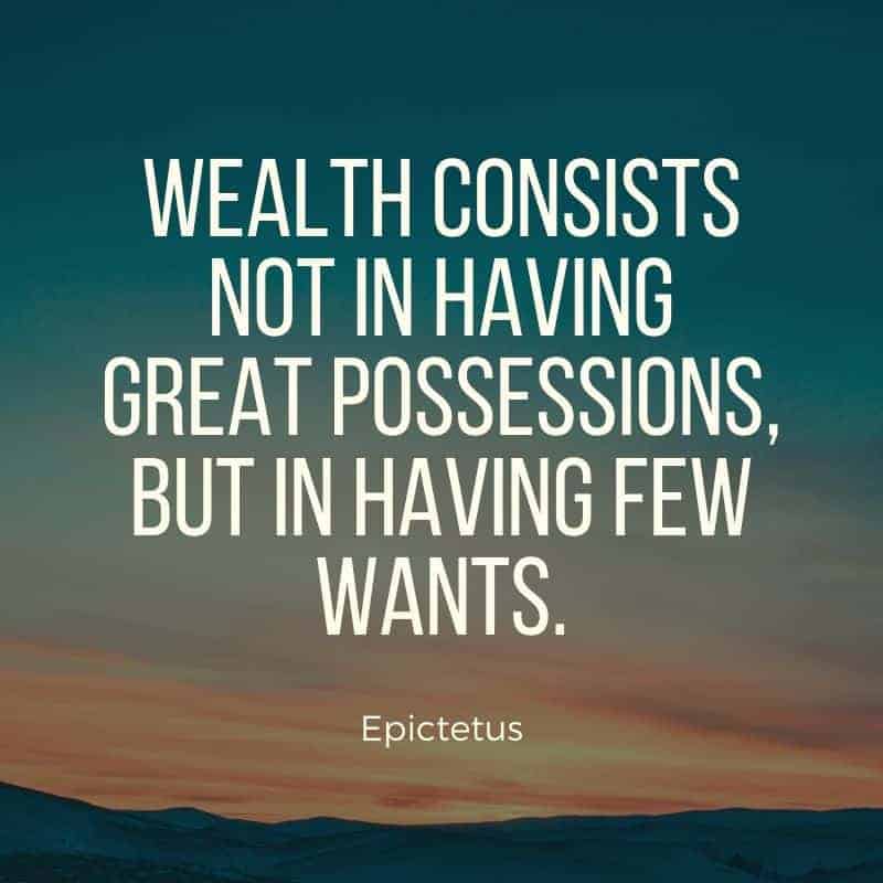 “La riqueza no consiste en tener grandes posesiones, sino en tener pocas necesidades”. - Epicteto